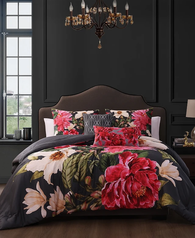 Bebejan Kyle Black Bedding 200 Thread Count 100 Cotton Sateen 5 Piece Reversible Comforter Set