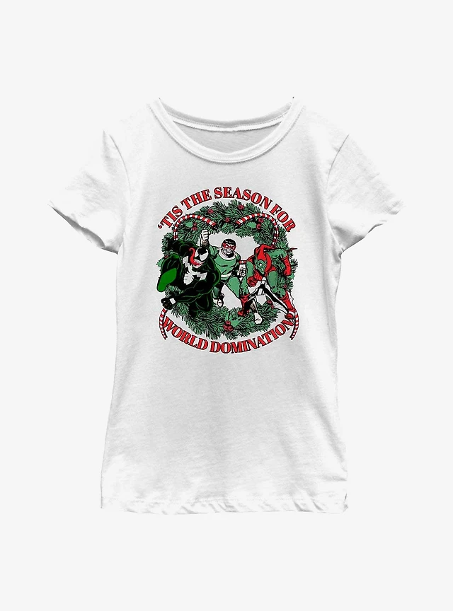 Marvel Venom, Doctor Octopus & Green Goblin Tis The Season For World Domination Youth Girls T-Shirt