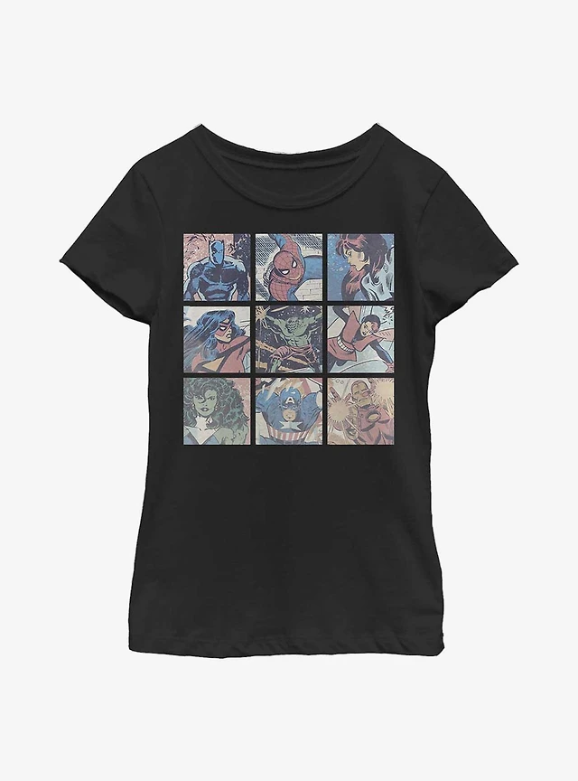 Marvel Avengers Square Comic Panels Youth Girls T-Shirt