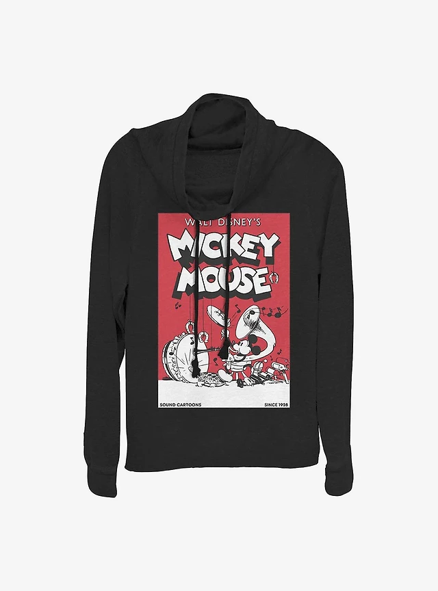 Disney Mickey Mouse Band Comic Cowl Neck Long-Sleeve Womens Top