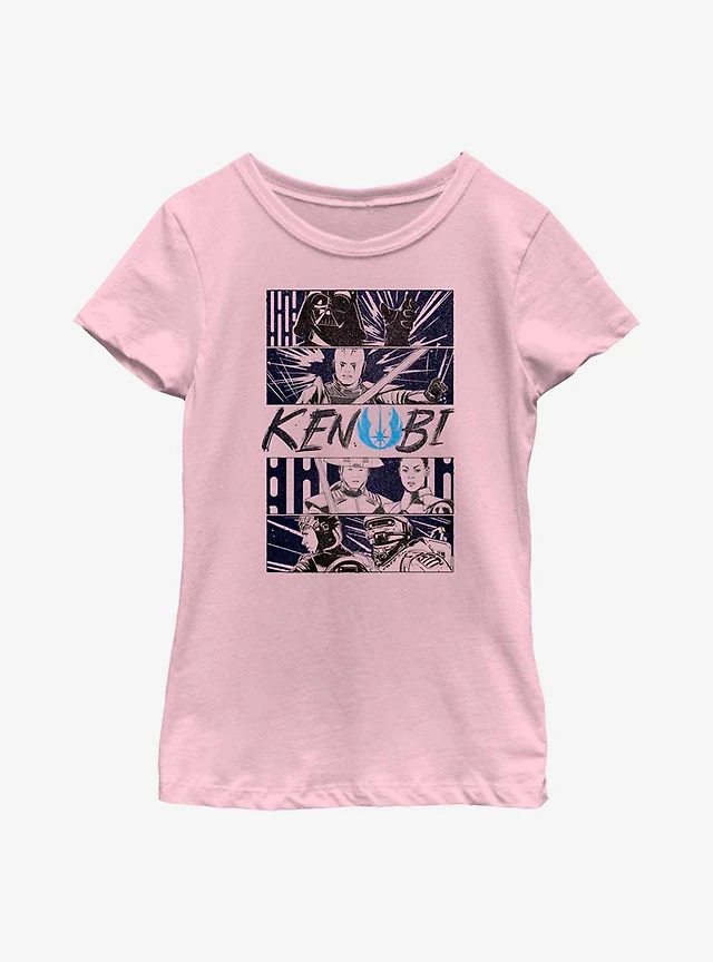 Star Wars Obi-Wan Kenobi Battle Comic Panels Youth Girls T-Shirt