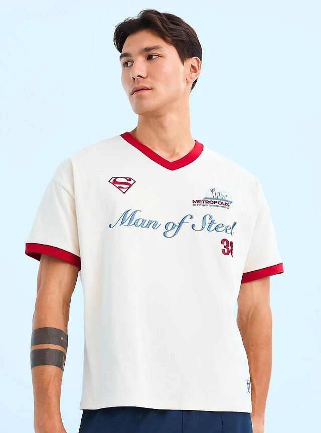 DC Comics Superman Man of Steel Embroidered Ringer V-Neck T-Shirt - BoxLunch Exclusive