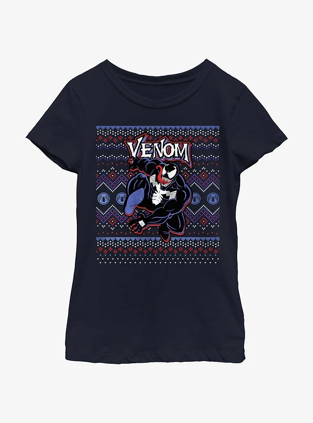 Marvel Venom Venomous Ugly Christmas Youth Girls T-Shirt