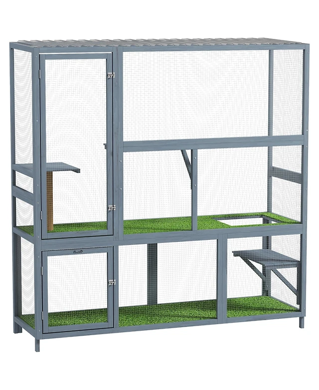 Cat Litter Box Enclosure with Storage Shelves Scratching Pad Charging Station