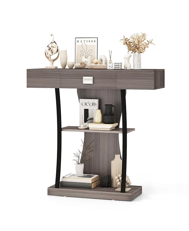 Sugift Entryway Console Table with Two Drawers and Tiered Shelves