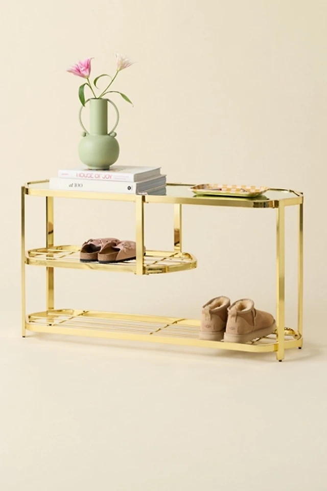 Gouun 2 Tier Glass Console Table with Metal Frame for Entryway