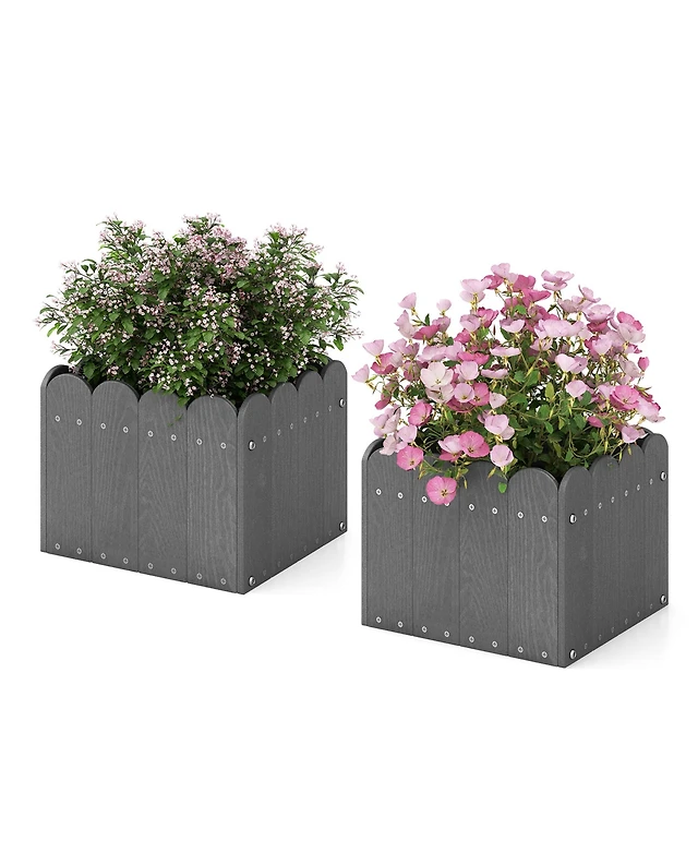 Gymax 2 Pack Rectangular Planter Box Weather-resistant Hdpe Flower Pot w/ Drainage Gaps