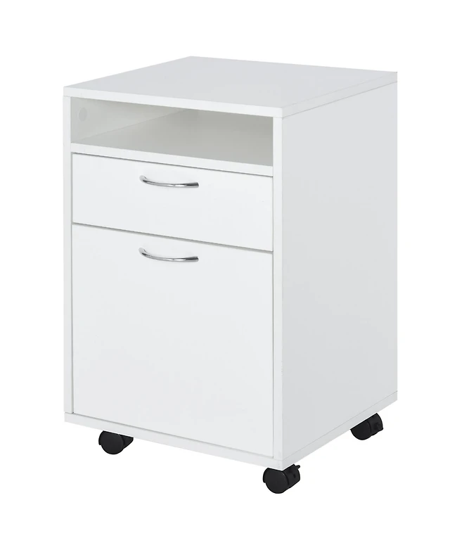 2 Drawer File Cabinet, Mobile Printer Stand with Open Storage Shelf, Wood Filing Cabinet fits A4 or Letter Size for Home Office, Black