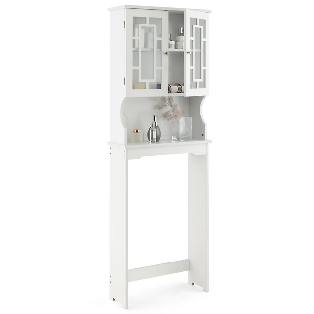 64.5 Tall Bathroom Cabinet With Tempered Glass Doors Adjustable Shelves