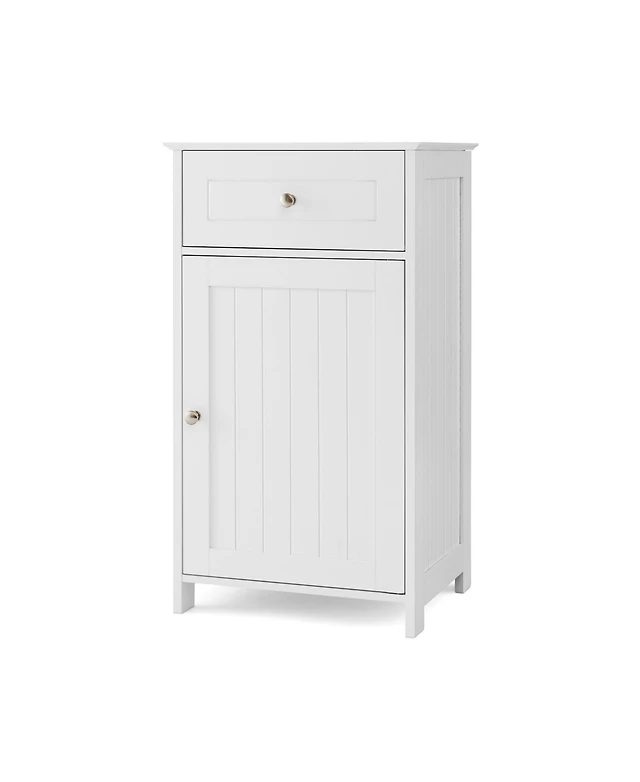 Casainc White Floor Storage Cabinet with Adjustable Shelves, 4 Drawers & Door for Bathroom and Living Room Use