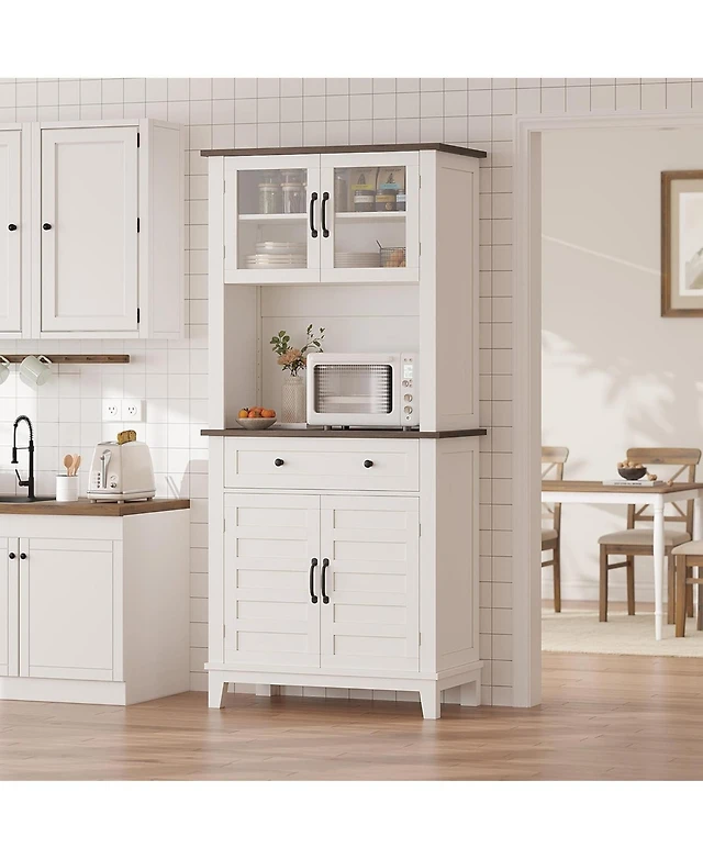71" Tall Kitchen Pantry Buffet Hutch Freestanding Storage Cabinet 4 Doors