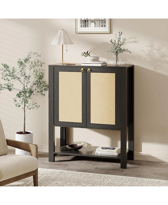 Casainc 27.56" Two-Door Wall Cabinet With Glass Front and Three-Tier Storage Woven DetailBrand