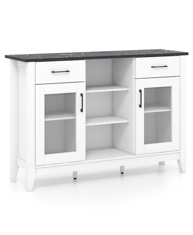 Costway Sideboard Buffet Cabinet with 2 Drawers Doors 3 Open Compartments 4 Shelves