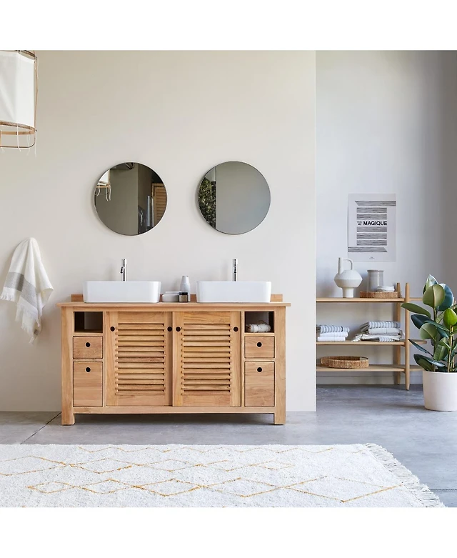LuxenHome Mid-Century Modern Rope 47.2" Floating Wall Mount 2 Door Cabinet