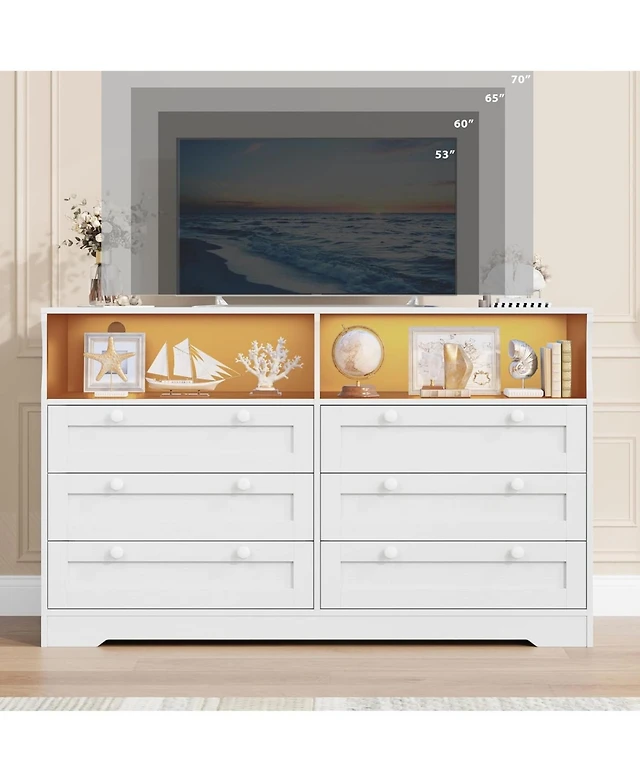gaomon Brown 63" Tv Stand Entertainment Center with Power Outlet for Living Room