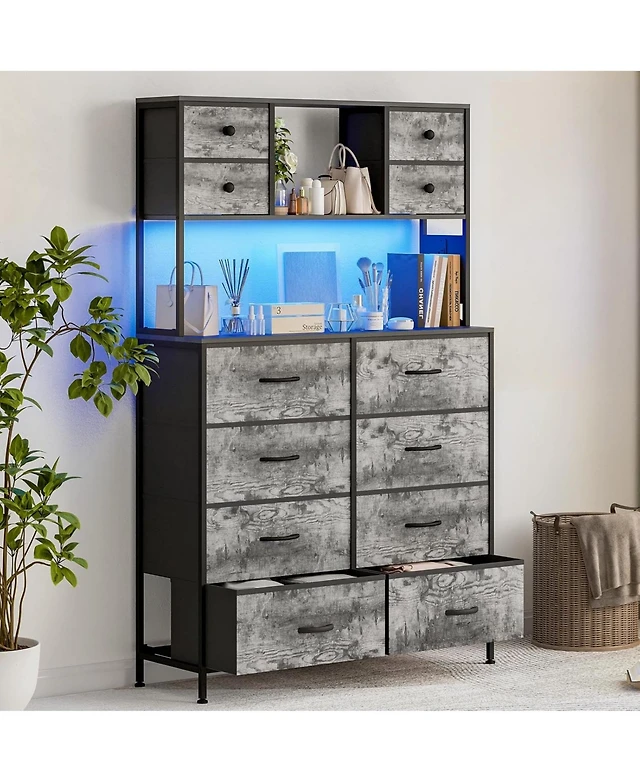 gaomon Dresser for Bedroom Drawer Fabric Chest with Led Lighting, Power Outlet and Open Shelves, Wood Top & Metal Frame for Bedroom, Hallway