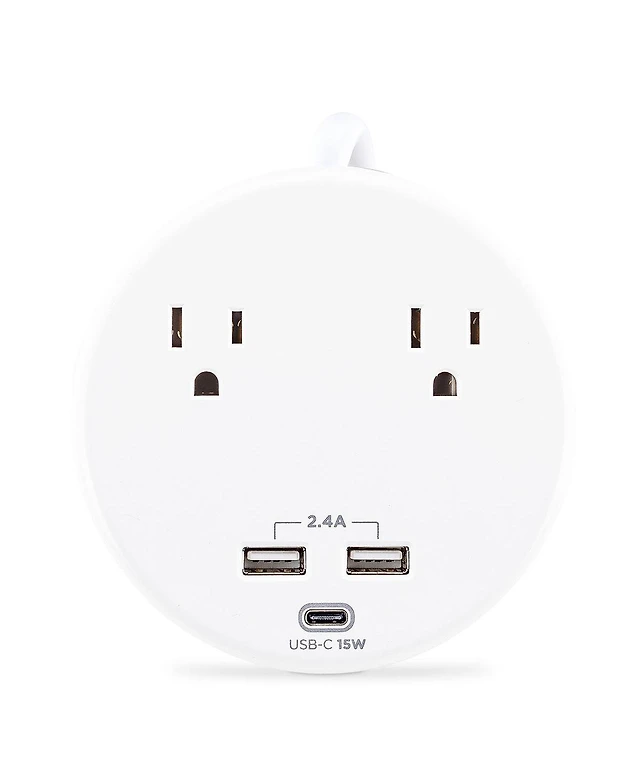 CyberPower P205UC 2-Outlet Round Surge Protector with 2x Usb-a and 1x Usb-c Port, White