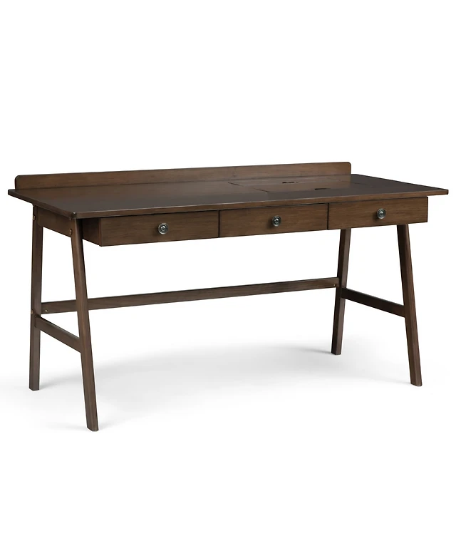 Home Office Desk with Power Outlet 3 Storage Drawers and Open Compartment-White