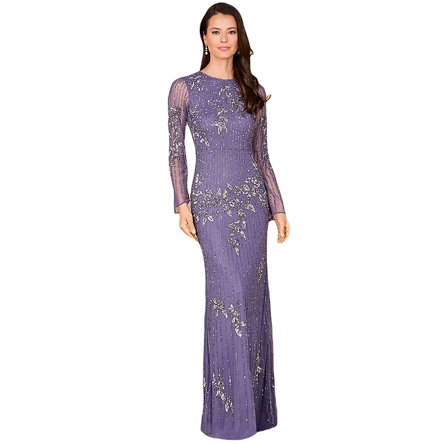 Lara Women's Long Sleeve, High Neck Beaded Gown - Outlet