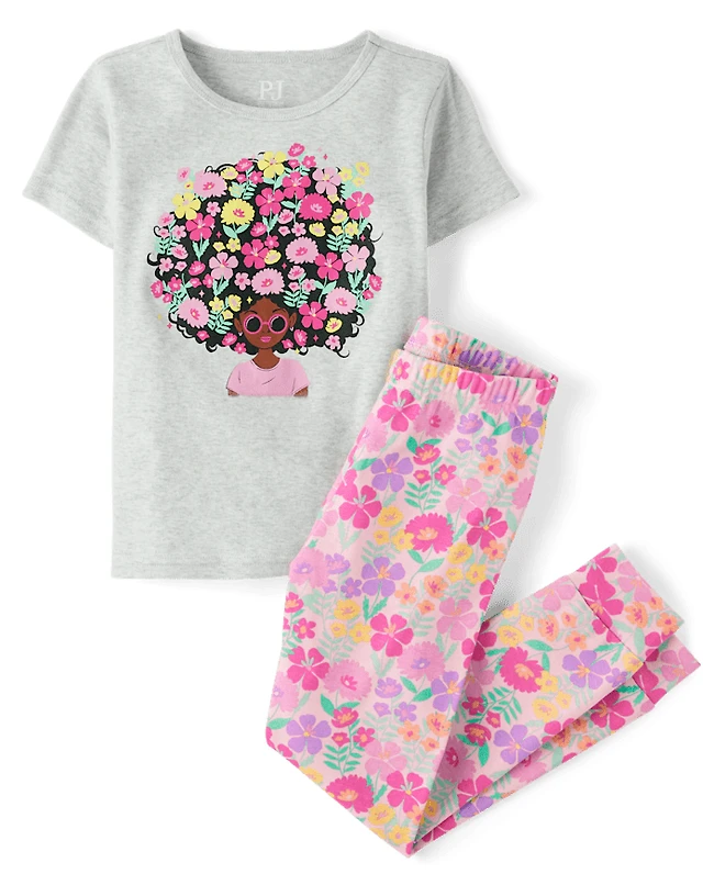Girls PurelySoft Short-Sleeve Snug Fit 2-Piece Pajama Set - Pink