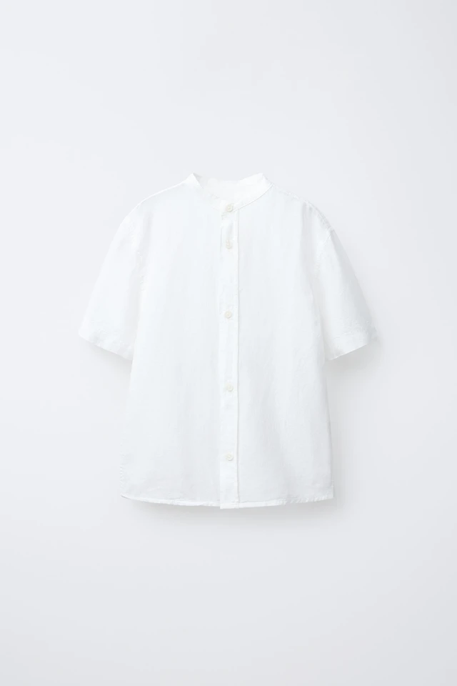LINEN COTTON MANDARIN COLLAR SHIRT