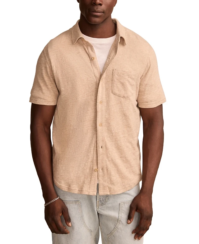 Lacoste Men's Long Sleeve Striped Button-Down Linen Shirt
