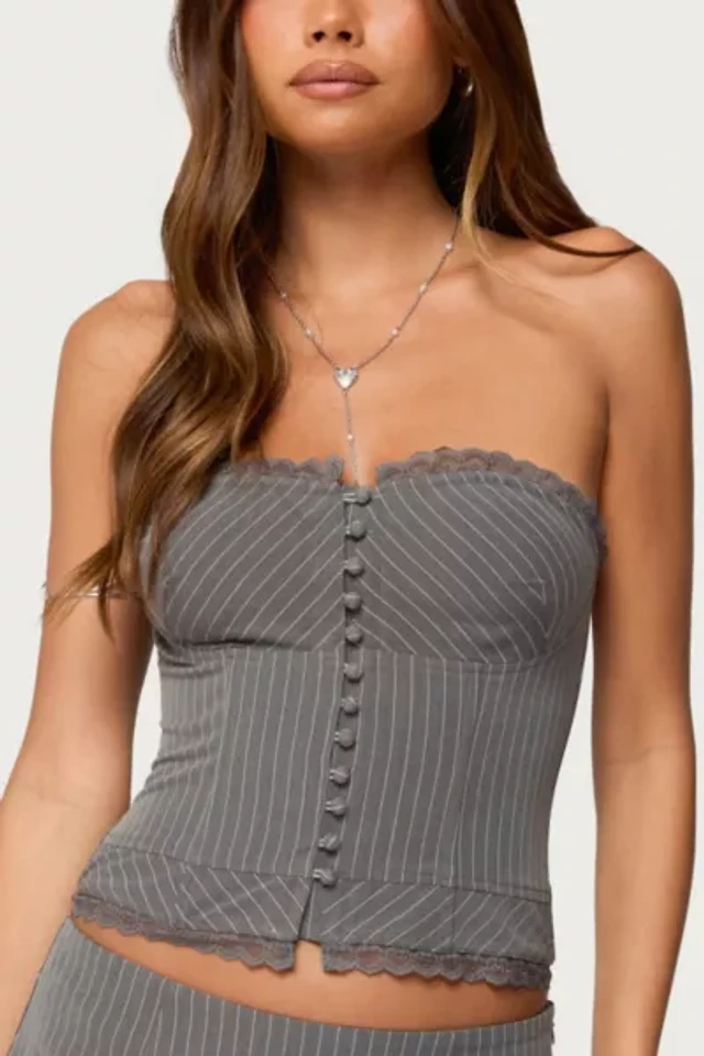 Edikted Women's Mona Lacey Pinstripe Strapless Corset