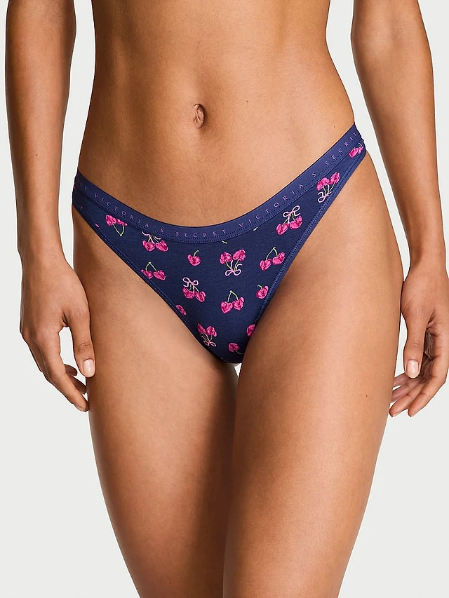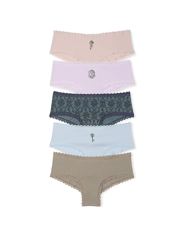 5-Pack Lace Logo Cotton High-Leg Thong Panties
