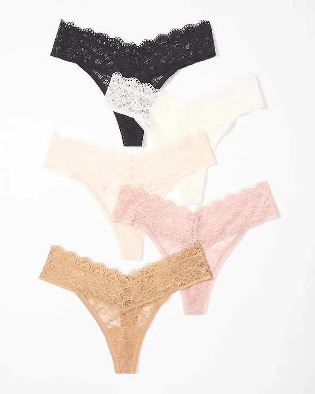Thong Panty with Enchanting Lace 5 Pack
