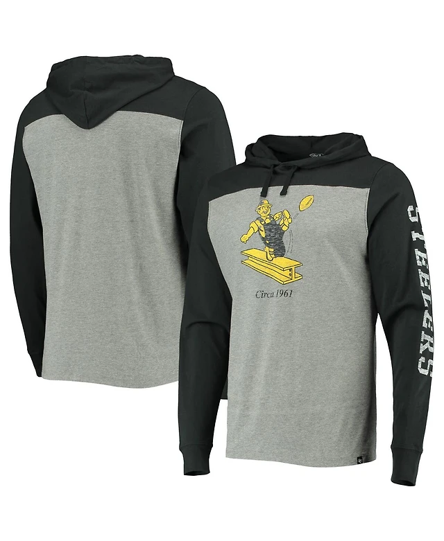 Men's Heathered Gray Pittsburgh Steelers Franklin Wooster Throwback Long Sleeve Hoodie T-shirt