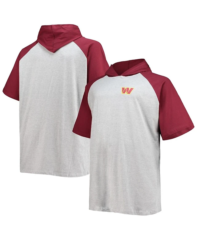 Men's Fanatics Heathered Gray, Burgundy Washington Commanders Big and Tall Raglan Pullover Short Sleeve Hoodie