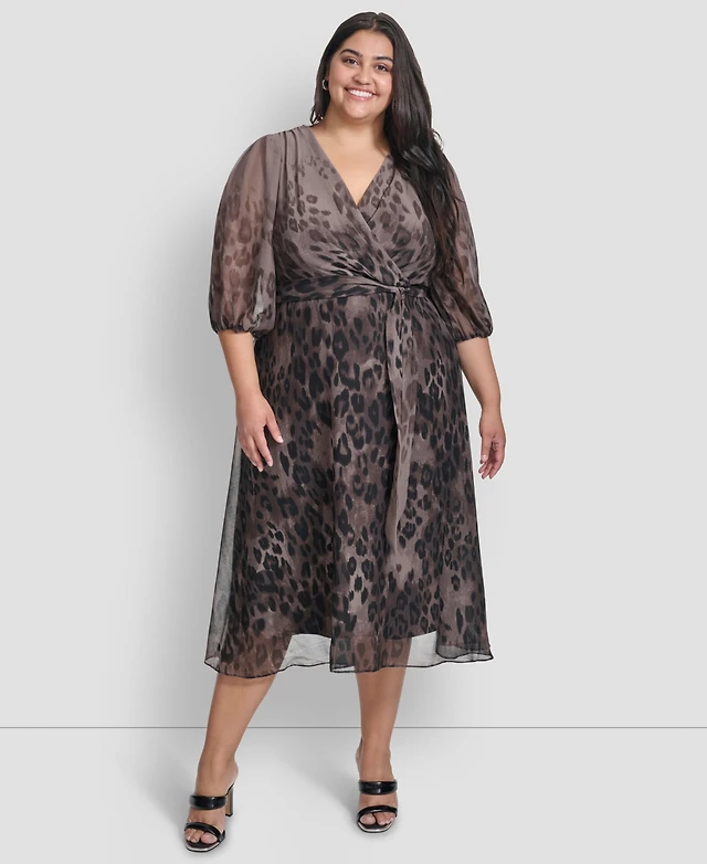 Calvin Klein Women's 3/4-Sleeve Chiffon Wrap A-Line Dress