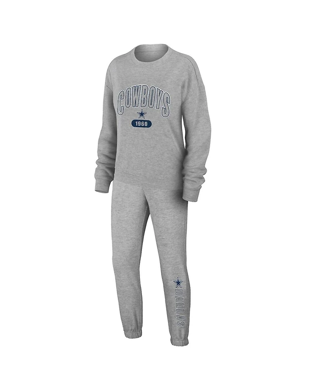 Women's Wear by Erin Andrews Heather Gray Dallas Stars Logo Pullover Hoodie and Pants Sleep Set