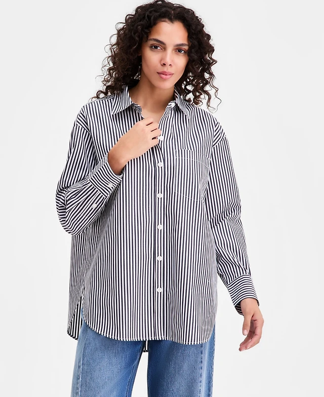 Ann Taylor Striped Relaxed Perfect Shirt Blue Stripe Women's