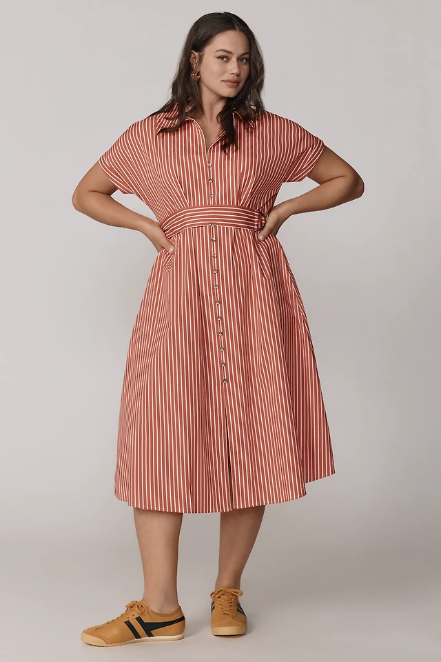 Miss Circle Women's Palina Pinstripes Cotton Poplin Pleated Midi Preppy Shirt Dress