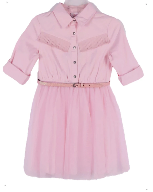 Sugar California Toddler Girls' Fringe Long Sleeve Button-Down Denim Tutu Dress