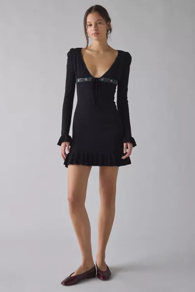 For Love & Lemons Naomi Knit Long Sleeve Mini Dress