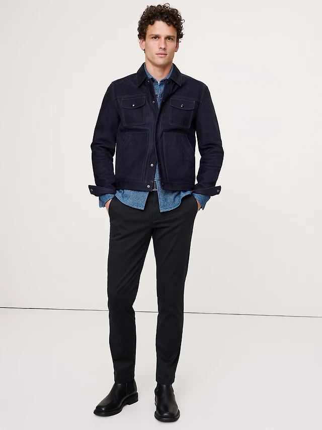 Calvin Klein Mens Ck Move 365 Slim Fit Performance Stretch Pants Slim Fit Chambray Long Sleeve Button Front Shirt Outfit