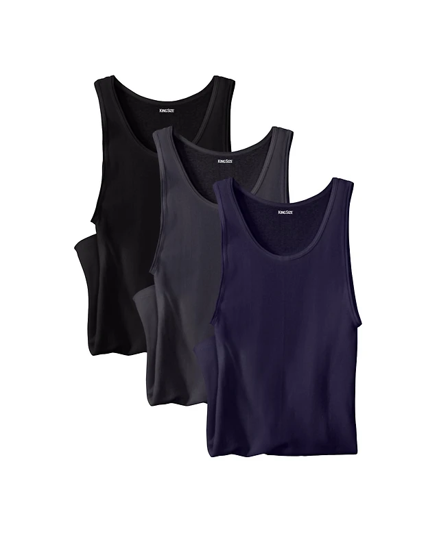 KingSize Men's Ribbed Cotton Tank Undershirt 3-Pack