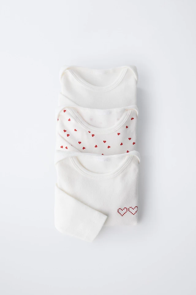 THREE-PACK OF HEART BODYSUITS