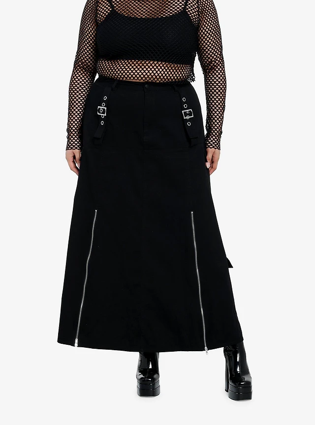 Social Collision Black ZIppers & Grommets Maxi Skirt Plus Size