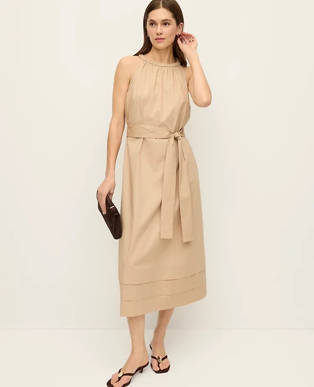 Ann Taylor Halter Flare Midi Dress Cool Sesame Women's