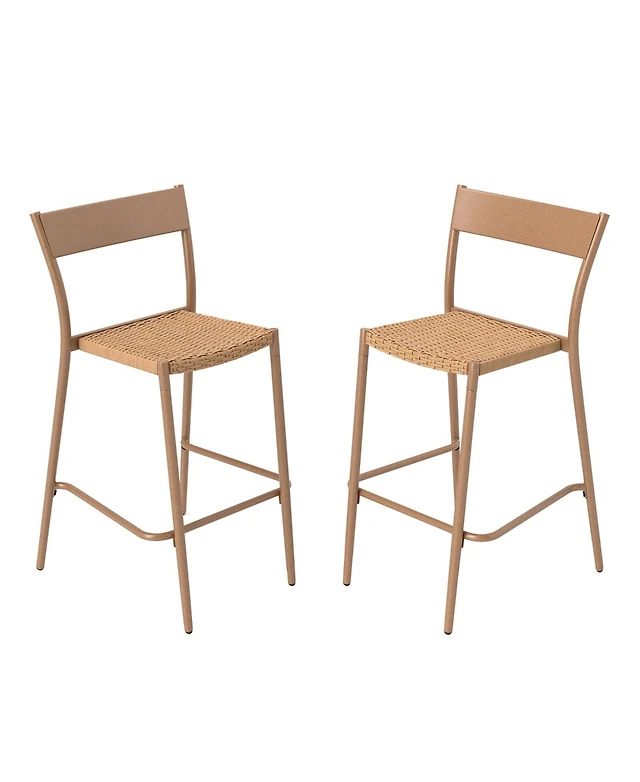 Streamdale Furniture Streamdale 28" Technical Leather Woven Bar Stool Set of 2 (Brown