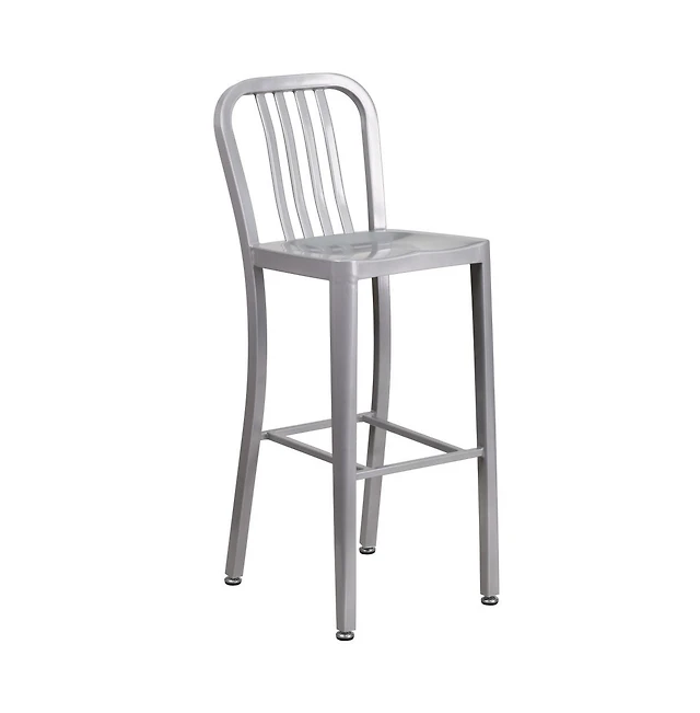 Merrick Lane Santorini Galvanized Steel Indoor/Outdoor Counter Bar Stool With Slatted Back And Powder Coated Finish