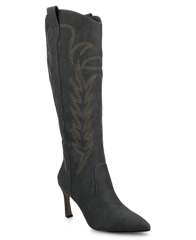Journee Collection Women's Laramie Embroidery Detail Knee High Western Boots