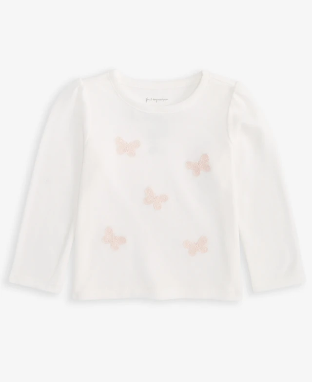 First Impressions Baby Girls Long Sleeve Embroidered Butterflies T-Shirt