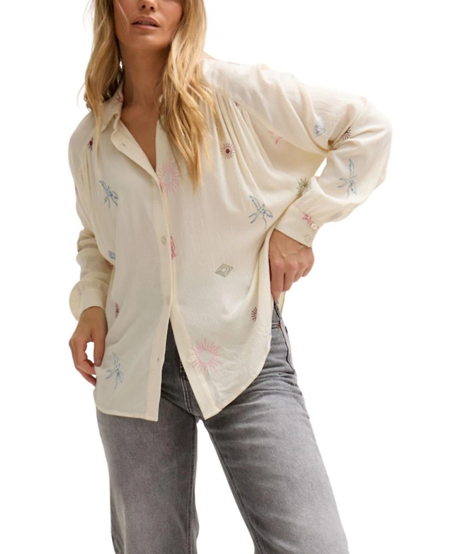 Cleo + Wolf Women's Calvin Floral Embroidered Long Sleeve Thermal Shirt