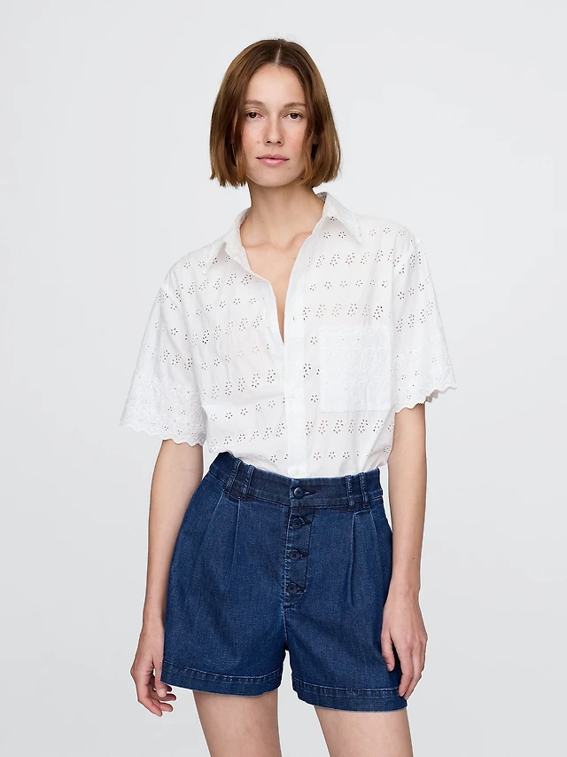 Sheer Straight-Hem Crop Shirt