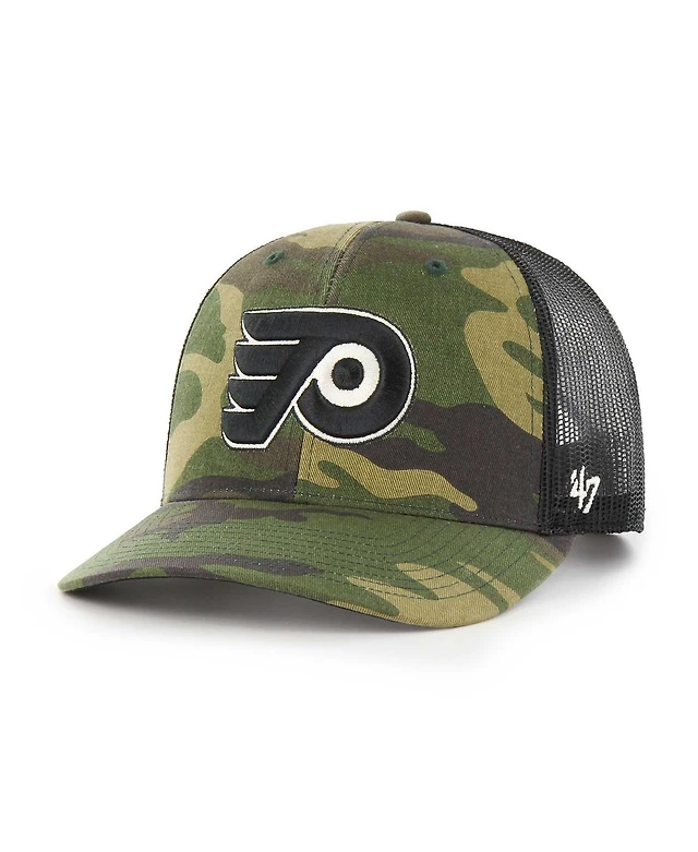 Men's '47 Brand Camo, Black Philadelphia Flyers Trucker Snapback Hat