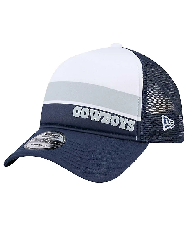 New Era Men's White/Navy Dallas Cowboys Court Sport Foam Front A-Frame 9FORTY Adjustable Trucker Hat